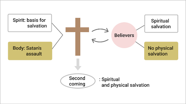 In order to save fallen people physically as well as spiritually, it was necessary that Jesus come in the flesh. Had the people believed in Jesus and so united with him in both spirit and flesh, they would have received salvation both spiritually and physically. Yet the people did not believe in Jesus; instead they led him to the cross. Jesus’ body was exposed to Satan’s assault, and he was killed. Therefore, even when faithful Christians are united with Jesus, their bodies remain exposed to Satan’s attack, just as was Jesus’ body.