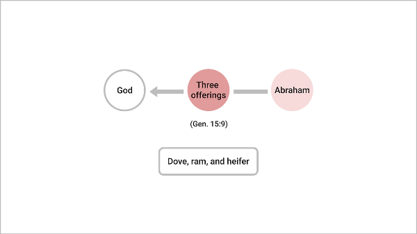 God commanded Abraham to offer a dove and a pigeon, a ram and a goat, and a heifer (Gen. 15:9). These were the objects for the condition which he offered to restore the foundation of faith. But before he could make the symbolic offering, Abraham had to demonstrate right faith, just as Noah before him was accounted righteous prior to building the ark as his symbolic offering.