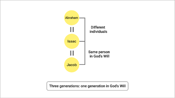 As explained earlier, God had hoped to fulfill, all at once, the dispensations in the formation, growth and completion stages by having Abraham successfully make the symbolic offering of three types of sacrifices on one altar. Contrary to this plan, Abraham failed, repeating the mistakes of the past. Consequently, the providence centered on him was prolonged through the three generations of Abraham, Isaac and Jacob.