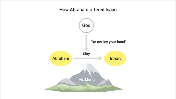 It was explained earlier that although Abraham’s symbolic offering ended in failure, there remained some grounds in the Principle for the foundation for the Messiah to be established centered on him. Yet since he had failed to fulfill his responsibility, Abraham was not qualified to repeat the symbolic offering himself (cf. Predestination 3). Somehow, God had to find a way to regard Abraham as though he had not failed in the symbolic offering or caused the prolongation of the providence. To achieve this, God commanded Abraham to offer Isaac as a burnt offering.