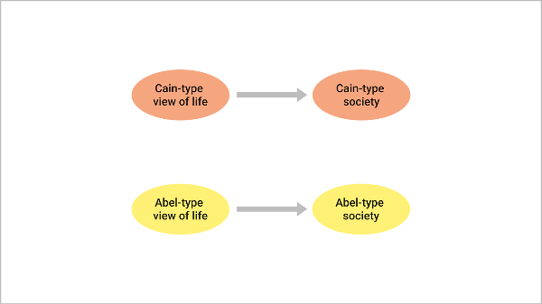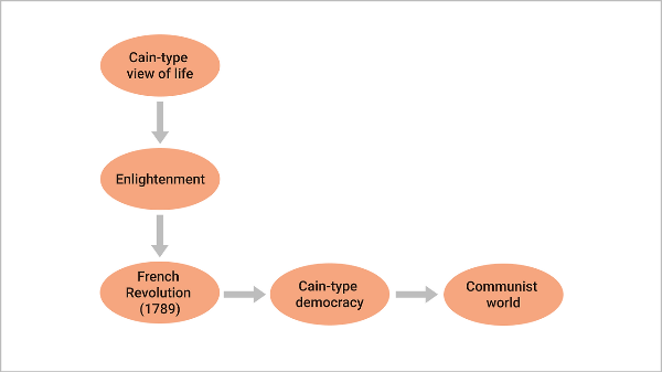 Let us now examine the ideological trends behind the demise of absolute monarchy with reference to the providence of restoration, which was headed toward the rise of the communist world based on the Cain-type view of life and the democratic world based on the Abel-type view of life.