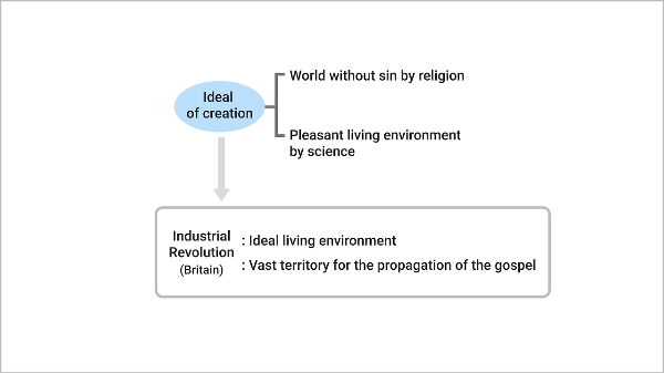 God’s ideal of creation cannot be fulfilled merely by forming a world without sin. God blessed human beings to have dominion over the universe (Gen. 1:28). We are to seek for the hidden laws of nature and advance science and technology to create a pleasant living environment. Religion and science have shouldered their respective responsibilities for helping fallen people overcome the internal and external aspects of their ignorance. Therefore, in the Last Days of history, we can expect not only the emergence of a truth which can guide people to completely alleviate their spiritual ignorance; we may also expect the progress of science to solve all the mysteries of the physical universe (cf. Eschatology 4.3). Together, they will bring human society to the stage just prior to the realization of the ideal world. Thus, we can understand that the Industrial Revolution which began in England arose out of God’s providence to restore the living environment to one suitable for the ideal world.