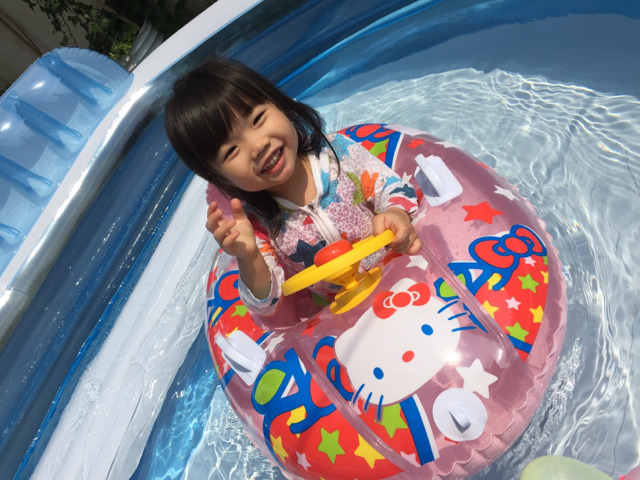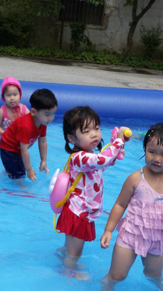 동생들때문에 외출이 힘든 관계로 집 앞마당에 커다란 풀장을 사서 엄마 아빠와 함께 물놀이를 햇답니다