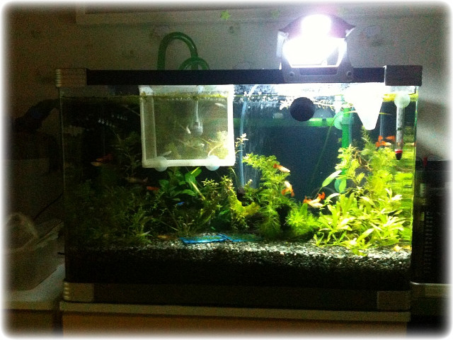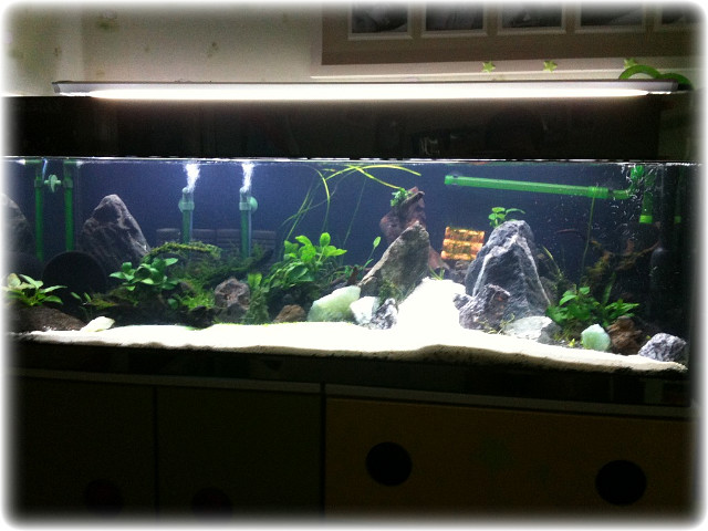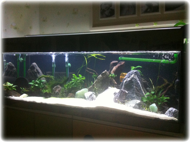 우여곡절 끝에 베란다에서 잠자고 있던 4자 어항을 세팅하게 되었습니다.