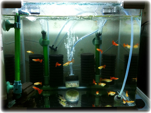 그래서 스폰지 여과기 쌍기 테트라2개, 단기 테트라 대짜 1개 달았습니다.