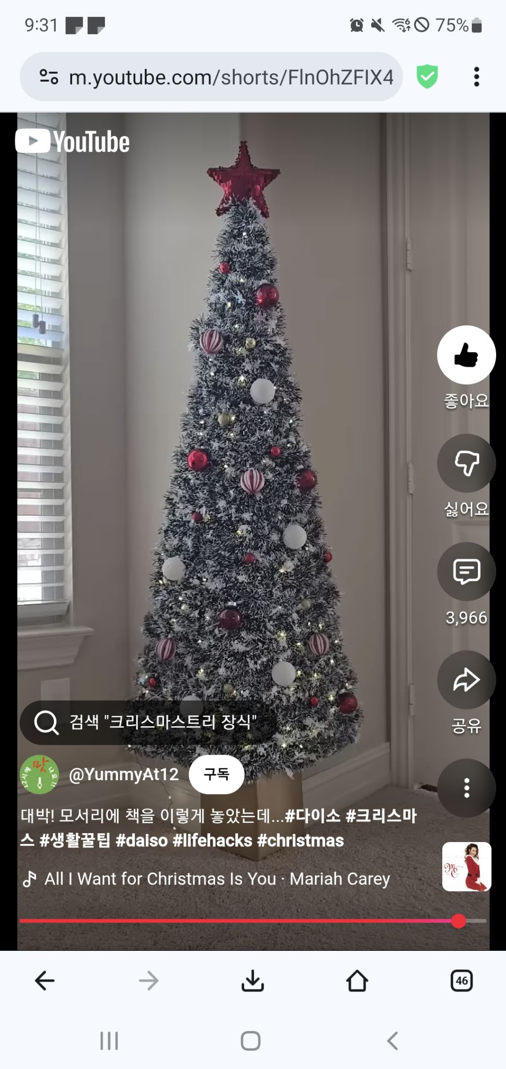 언니 이 트리는 안 쓰러질 거 같아요! 작성자먐먀의분홍젤리|작성시간25.12.11|조회수123 목록 댓글 2 글자크기 작게가 글자크기 크게가 https://youtube.com/shorts/FlnOhZFIX4M?si=xOuY3rQe6rDkqz1Y고양이가 못 쓰러트리는 트리로 크리스마스를 즐기자고요♡ 다음검색 현재 게시글 추가 기능 열기 북마크 공유하기 신고 센터로 신고 댓글 댓글 2 댓글쓰기 답글쓰기 댓글 리스트 작성자크집사 | 작성시간 25.12.14 쓰러뜨리지는 못하겠지만 뜯어먹겠지 ㅋ 답댓글 작성자먐먀의분홍젤리 작성자 본인 여부 작성자 | 작성시간 25.12.25 ㅋㅋㅋㅋ 댓글 전체보기