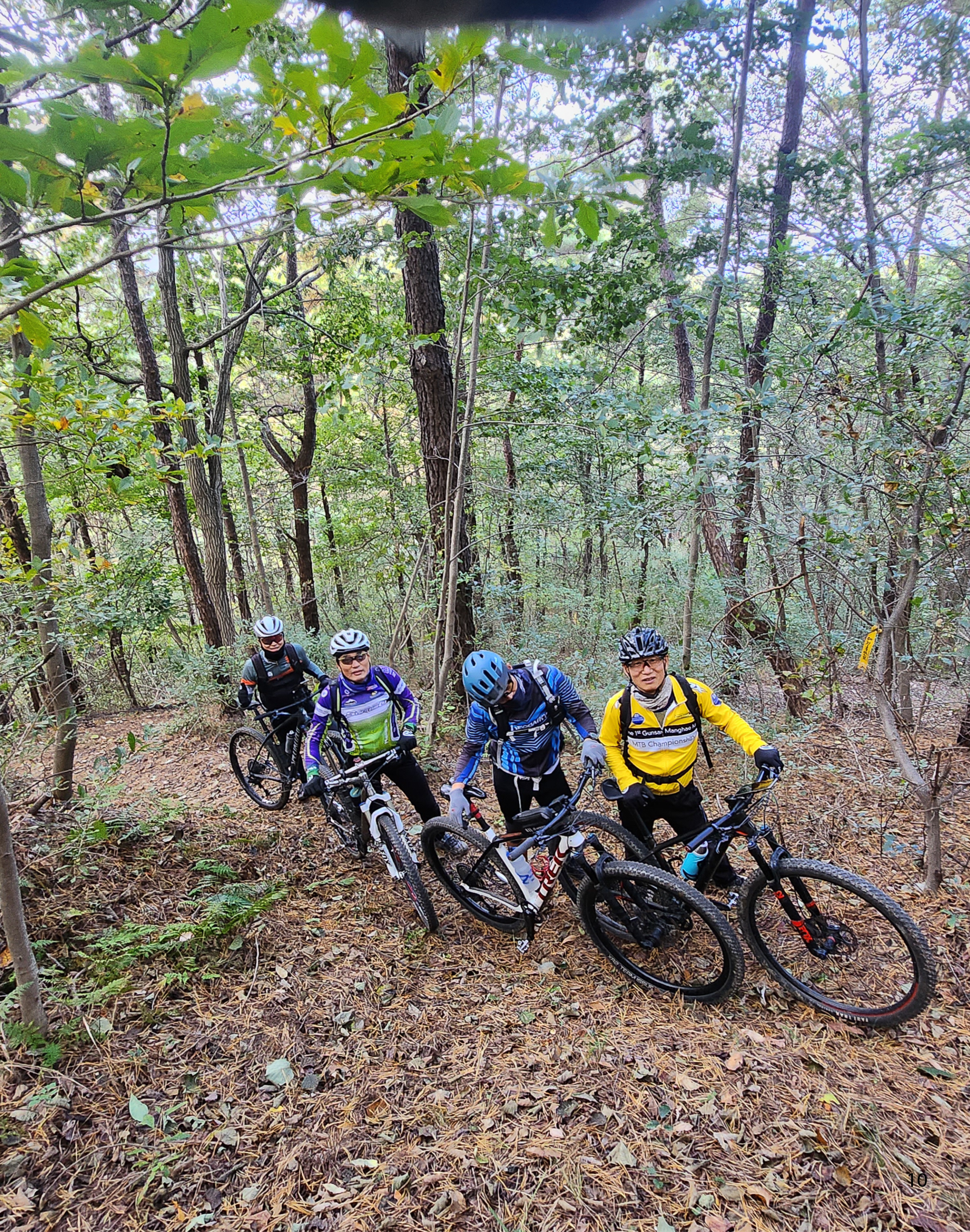 힘들어도 길쭉길쭉 위로 솟은 나무들 사이를 라이딩하는 재미는 최고다.