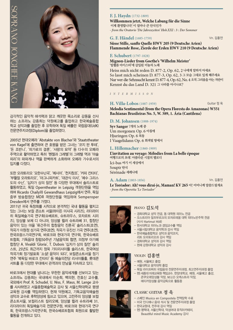 감각적인 음악적 해석력과 맑고 깨끗한 목소리로 감동을 선사하는 소프라노 강종희는 덕원예고를 졸업하고 한국예술종합학교 성악과를 졸업한 후 유학하여 독일 베를린 국립음대(UdK) 전문연주자과정(Diplom)을 졸업하였다.