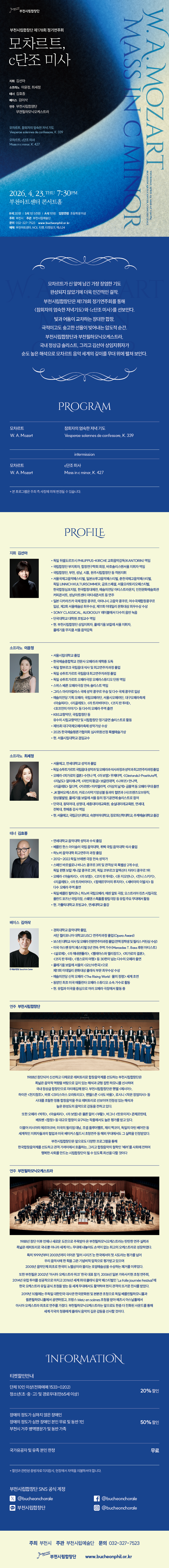 [4.23] 부천시립합창단 제178회 정기연주회 - 모차르트, c단조 미사 작성자부천시 시립예술단|작성시간26.03.24|조회수1 목록 댓글 0 글자크기 작게가 글자크기 크게가 다음검색 현재 게시글 추가 기능 열기 북마크 공유하기 신고 센터로 신고 댓글 댓글 0 댓글쓰기 댓글 리스트