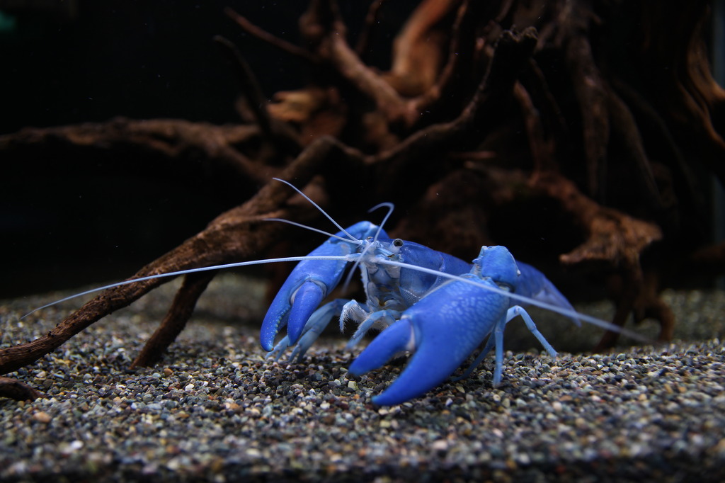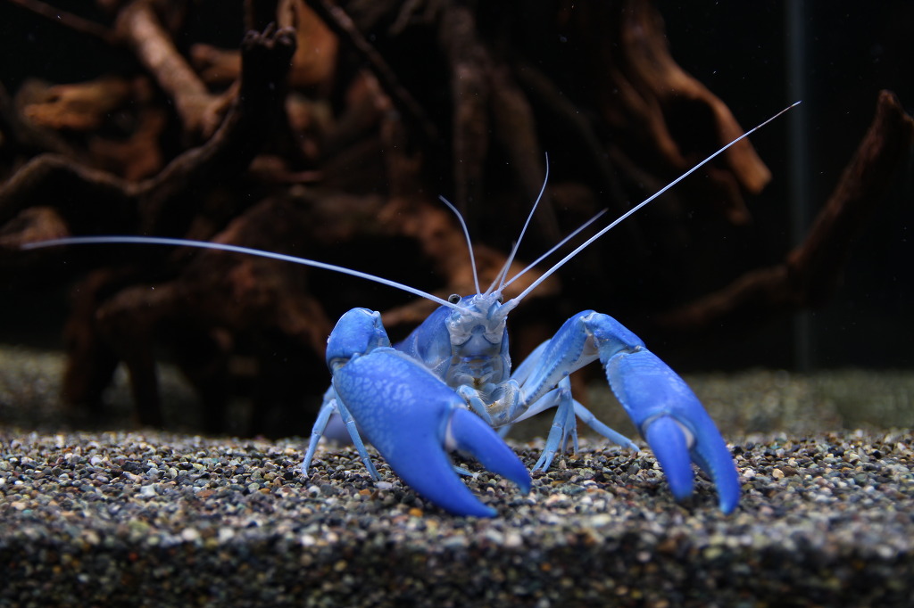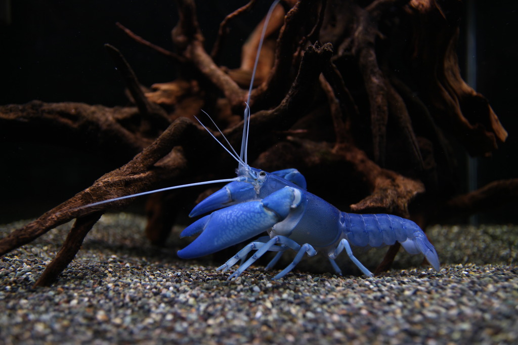 안구 밑에 보이는 스크레치는 제법 오래 전 같은 어항에 어항 높이보다 5cm 낮은 칸막이를 설치하여 #2와 나누어 사육할 적에, 처음으로 #2가 넘어와 #1에게 입힌 상처입니다. 그 외에도 왼쪽 집게발의 한쪽 끝이 부서지는 등의 공격을 당하기도 했는데요, 동족포식으로 이어지지 않아서 무척 다행입니다.