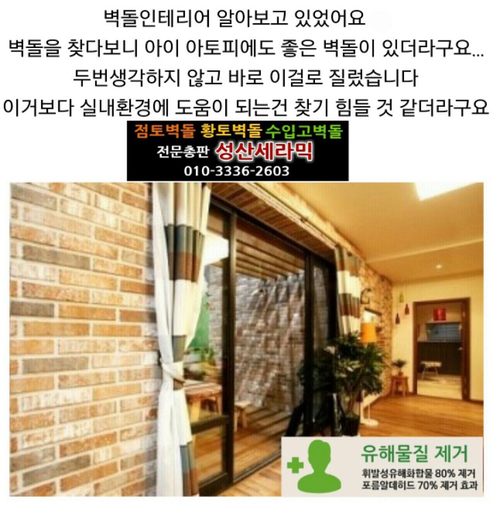 우선은 보기에도 좋고, 시공하기도 편하고 습기에도 강하겠지만, 황토 속에 살고 있는 유익한 미생물을 다 죽이는 것은 물론, 황토벽돌의 고유 기능이자 가장 좋은 기능인 숨 쉬는 기능을저하 시키거나 마비시킵니다.