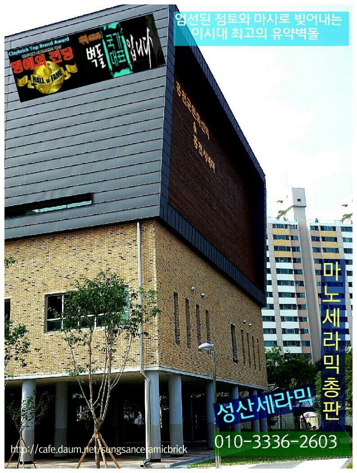 건물 외부로 보이는 황토벽돌 표면은 아무효과나 상관이 없고 색상도 미려하지 못합니다.
