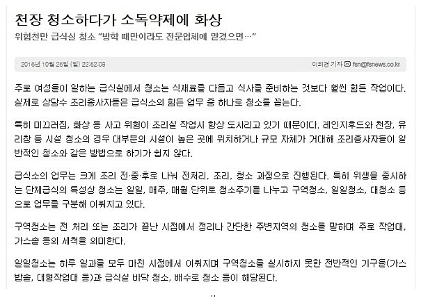 남자도 아닌 여성이, 그리고 젊지도 않은 중년여성분들이 대부분인 조리종사자들에게는
