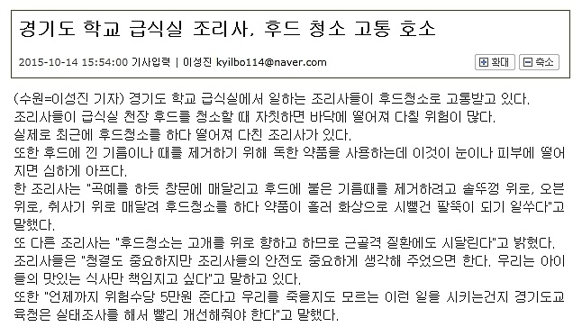 조리를 하기에도 힘이드는데 후드청소까지 직접 한다는 것은 정말 힘들기도 하지만