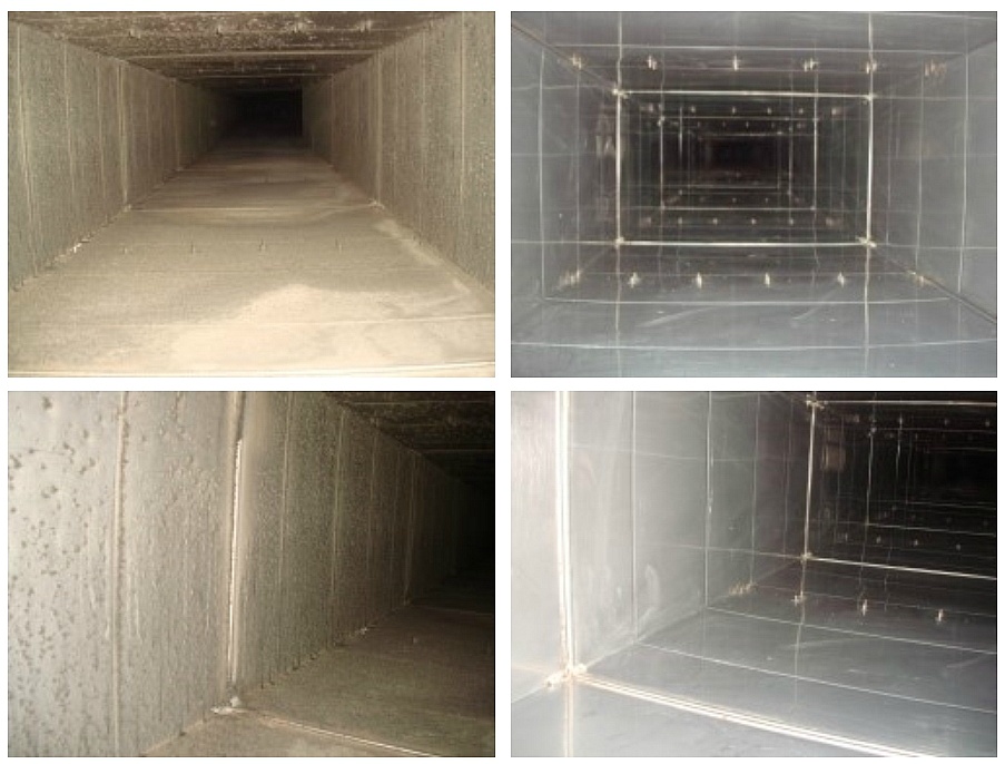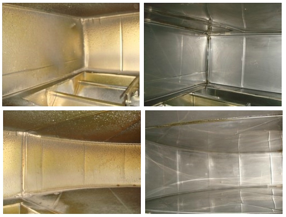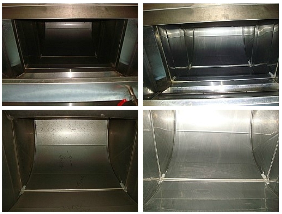 배기덕트 내부는 구간에 따라 다른 오염도를 나타내고 있지만