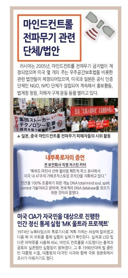 (플러스코리아타임즈신문에서 마인드컨트롤전파무기피해를 기사로 다룸)