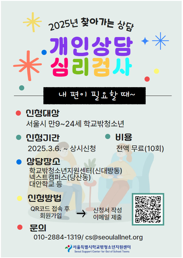 [서울시학교밖청소년지원센터] 2025 찾아가는 상담 및 심리검사 참여자 모집