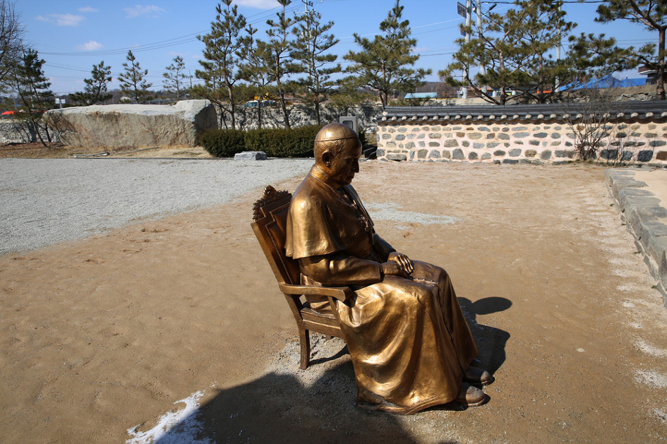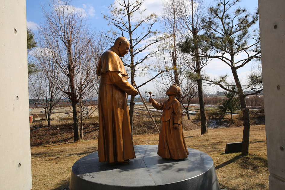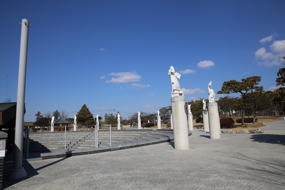 이곳에 와서 잠시 앉아 있던 프란치스코 교황의 모습을 동상으로 만들어놓았습니다. 한국 최초의 사제 김대건 신부의 탄생지인 이곳은 국가사적 제529호로 지정되어 있습니다.