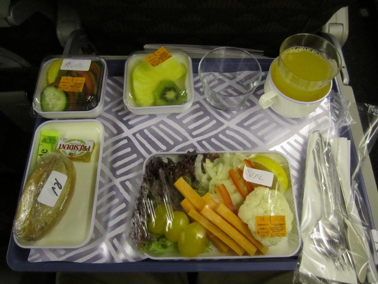 귀국편에서 출발 2시간만에 주는 생야채식. 앞의 동양인 채식보다는 더 좋았습니다.