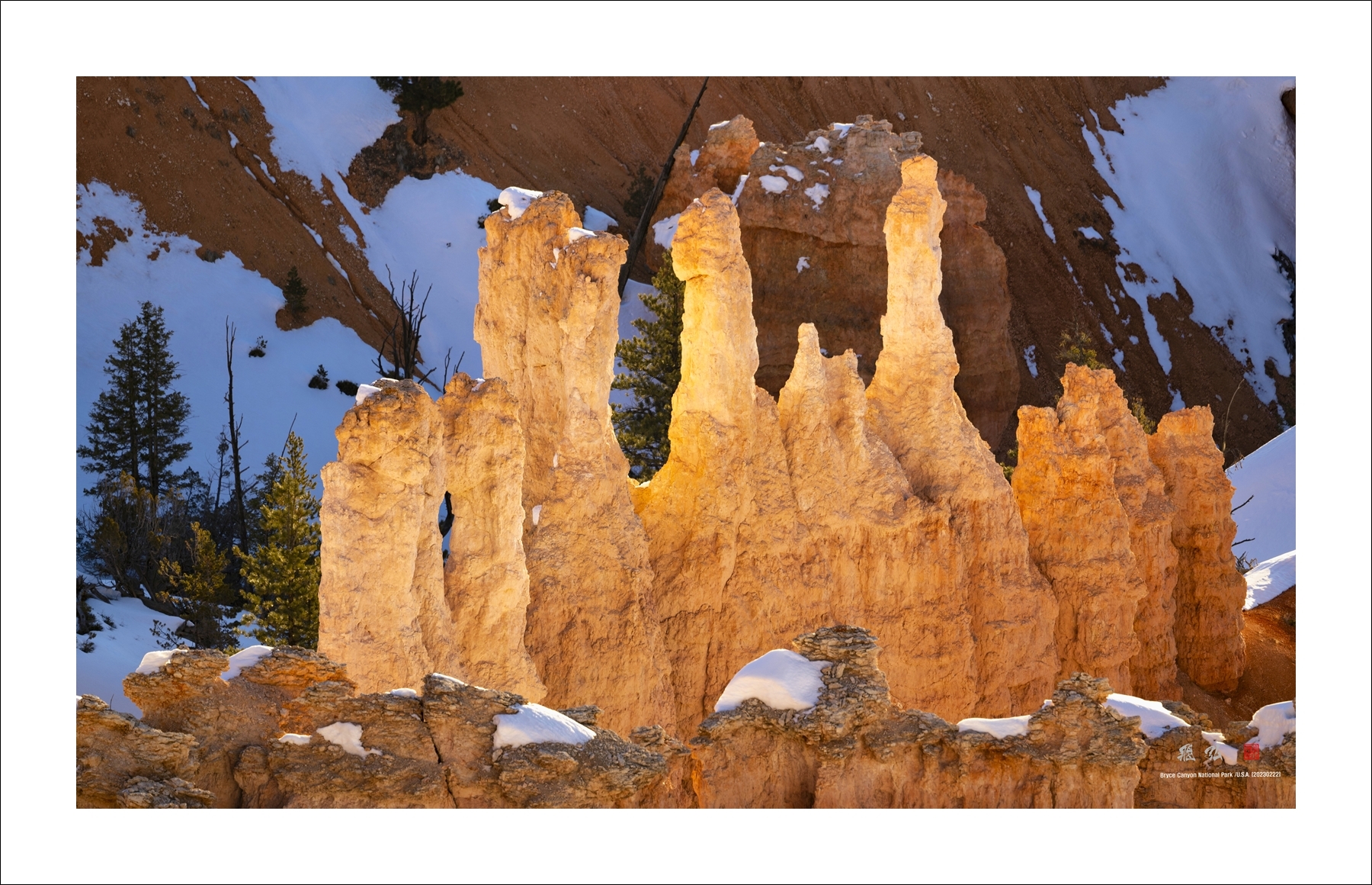모든 사암 기둥들이 마치 불을켠듯 일몰빛과는 차원이 다른