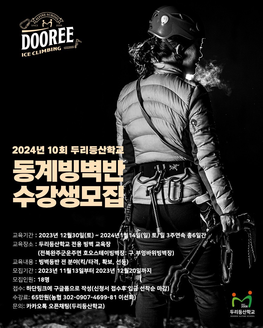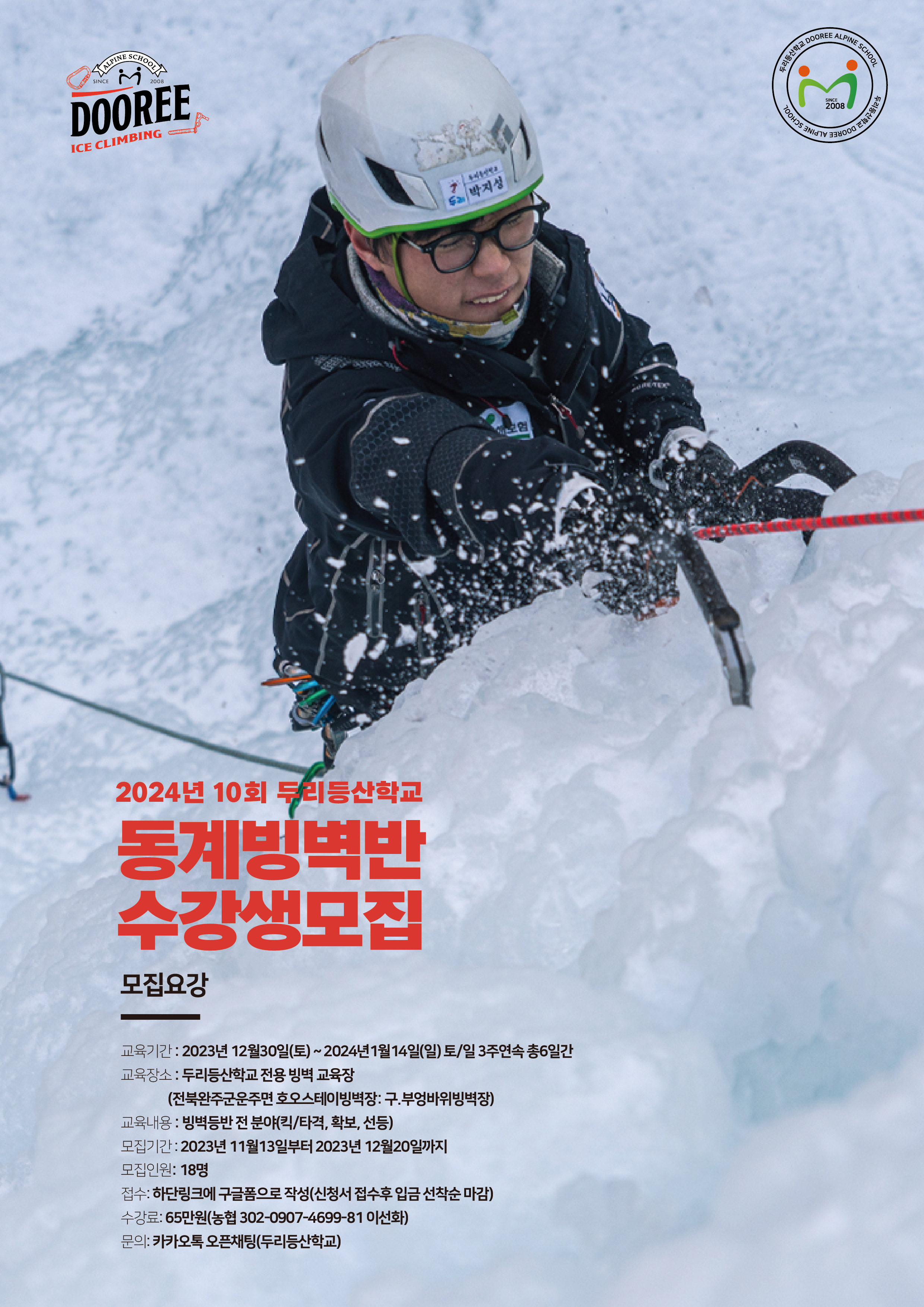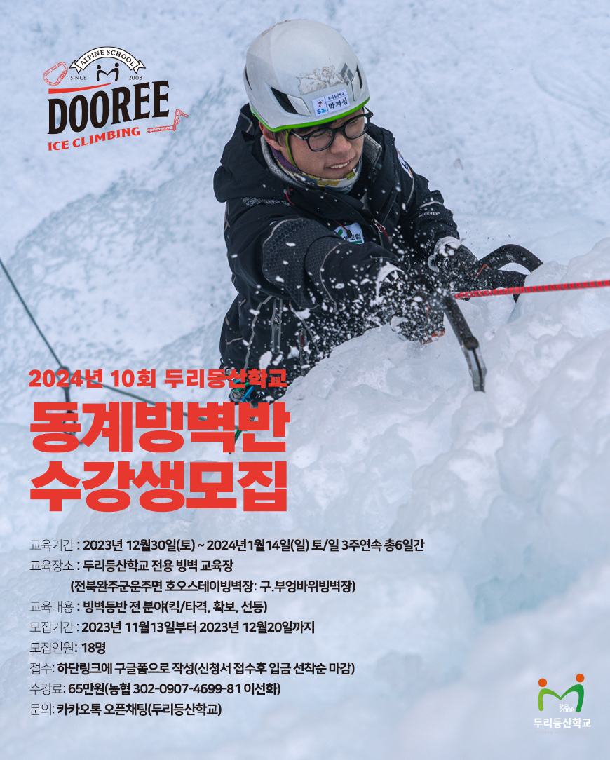 작성자윤영남 작성시간 23.12.21 제10회 빙벽반 모집이 마감되었습니다~
