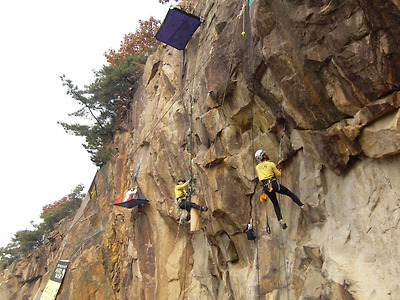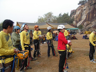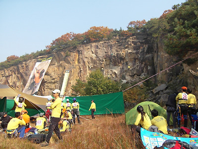 (익스트림라이더 등산학교 강사님들이 대회준비중인 모습)