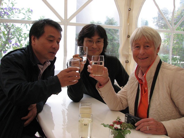 포도주스를 들고 계신 김태윤 교수님, 이문규 선생님, 브리따 선생님(왼쪽부터)