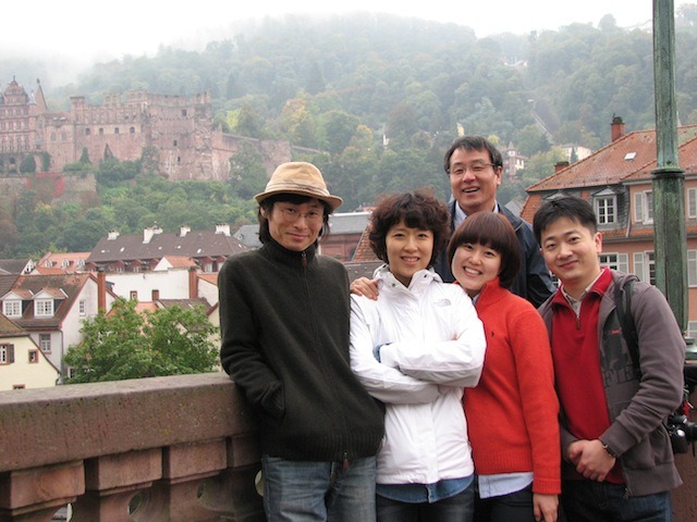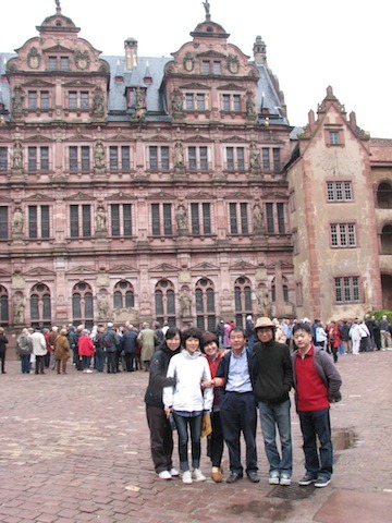 카를 데오도르 다리에서 하이델베르크성을 배경으로 한 단체사진