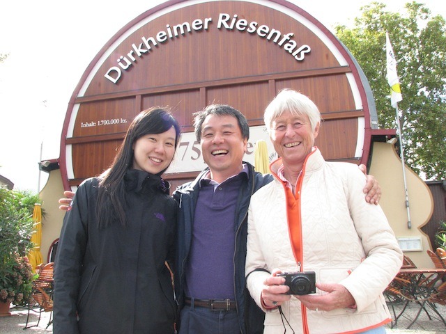 이렇게 멋진 풍경을 뒤로 한채 우리는 상점이 많은 곳으로 이동해 커피를 한잔씩 하였다. 커피를 마신 후 전주까지 와인축제가 열렸던 곳에 갔다. 170만리터의 와인을 저장하는 통 앞에서 사진 한방!! 그리고 그 바로 옆에 있는 독일분위기가 물씬 풍기는 식당에서 점심을 먹었다. 아마도 이제껏 먹었던 독일 음식중 제일 먹기 힘드리라.. 빵 위에 두가지 종류의 치즈를 얹어먹었는데 하나는 시큼한 요플레같았고, 하나는 굴비의 고린내가 나는 듯했다.