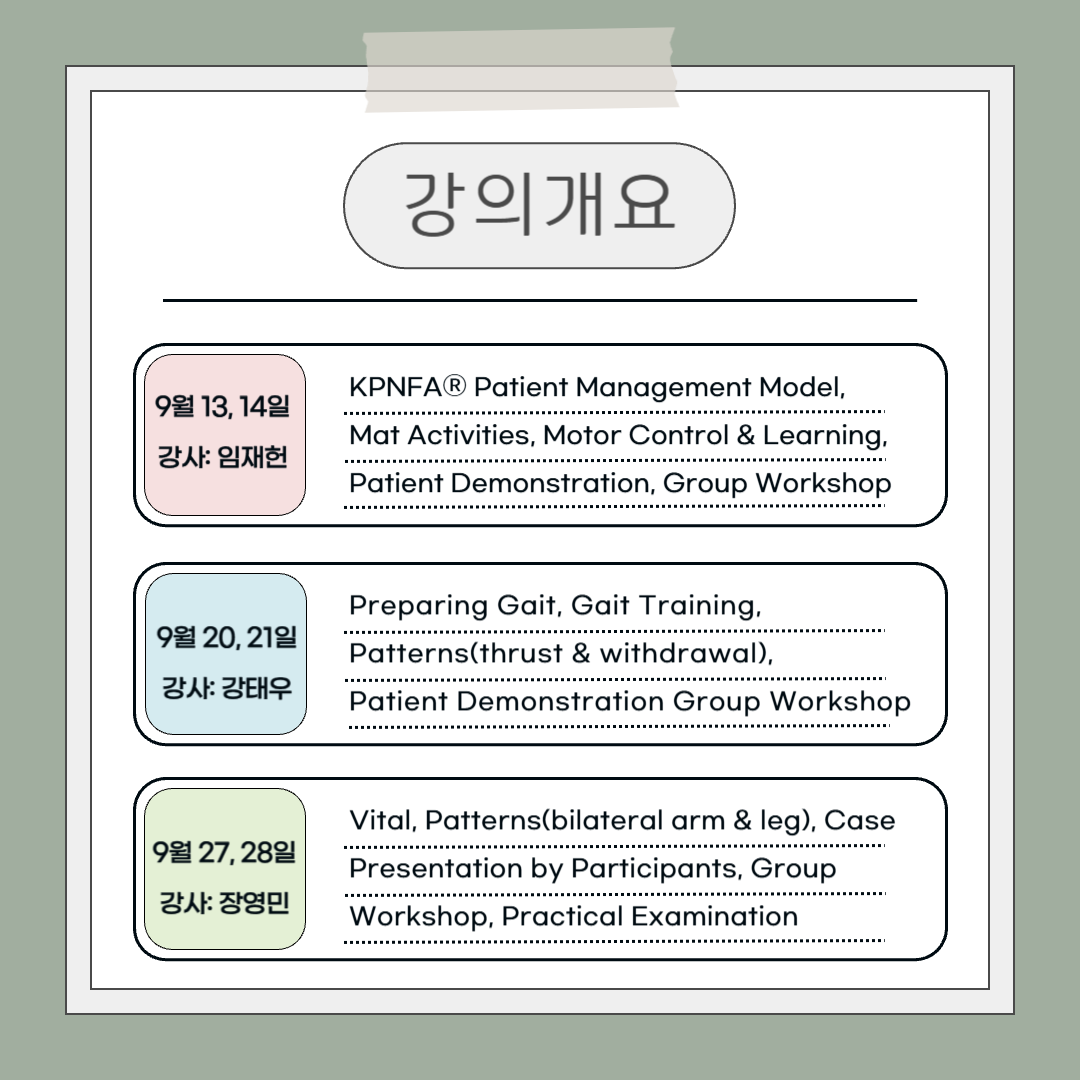 -내용 : KPNFAⓇ Patient Management Model, Mat Activities, Motor Control &