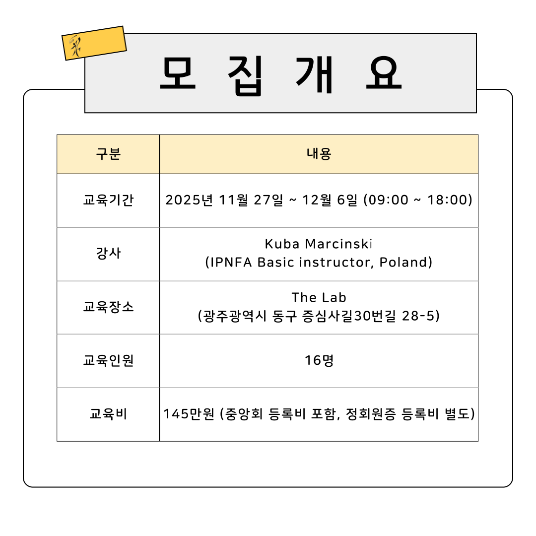 1. 교육명: 2025년 KPNFAⓇ 광주시회 3차 Level I & II course