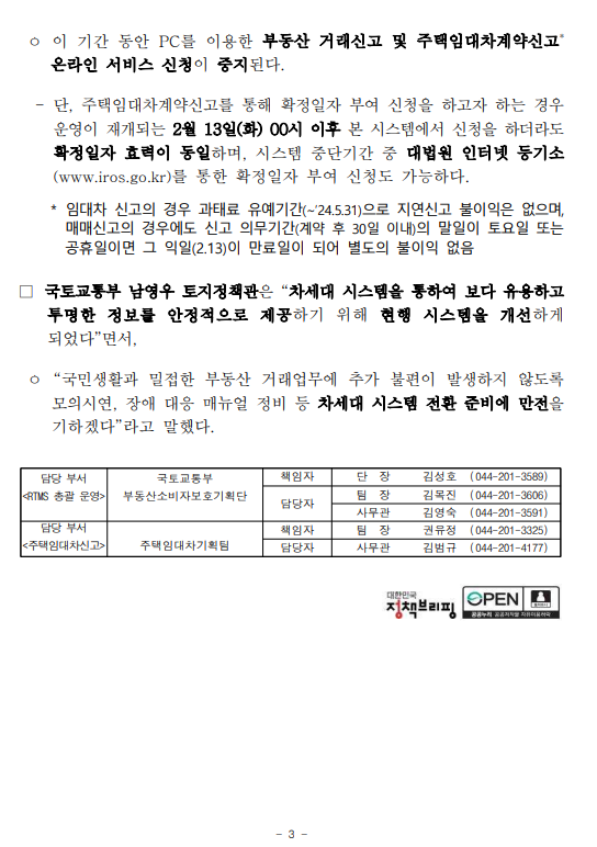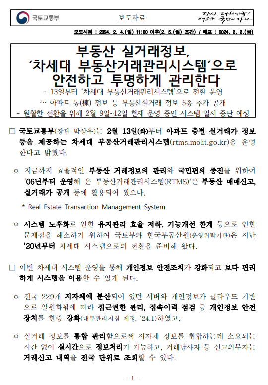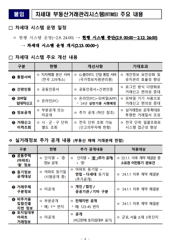 2월 13일 국토부실거래시스템 개편 작성자번개번개|작성시간24.02.15|조회수398 목록 댓글 1 글자크기 작게가 글자크기 크게가 다음검색 현재 게시글 추가 기능 열기 북마크 공유하기 신고 센터로 신고 댓글 댓글 1 댓글쓰기 답글쓰기 댓글 리스트 작성자번개 | 작성시간 24.02.15 서울 부동산 정보광장도 아직 재정비 하는 모양 오늘 보면 업데이트가 안되고 있음 댓글 전체보기