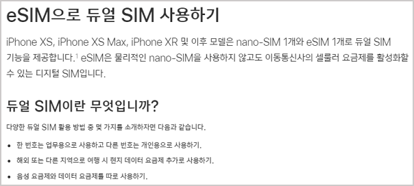 또하나는 아이폰에 xs,xr모델부터 들어가기 시가한 esim 듀얼심 기능으로