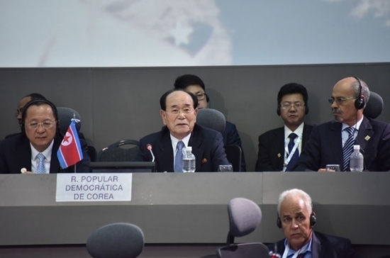 지난 2016년 9월 17일(현지시각) 베네수엘라에서 열린 제17차 비동맹정상회의에 참석한 김영남 전 최고인민회의 상임위원장. [통일뉴스 자료사진]