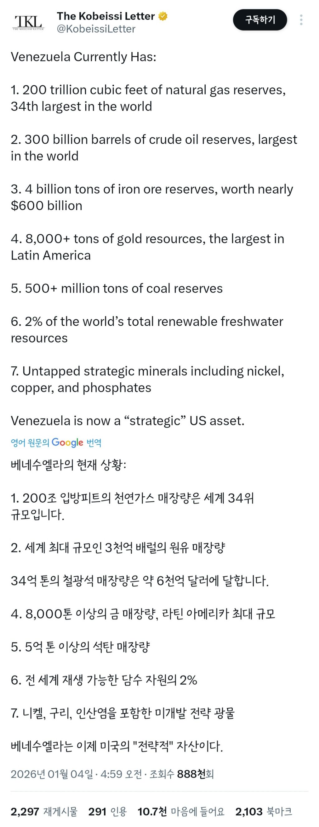 베네수엘라의 현재상황 작성자일송정|작성시간26.01.04|조회수639 목록 댓글 2 글자크기 작게가 글자크기 크게가 ㅊㅊhttps://x.com/sniffshiba/status/2007590975590559921 다음검색 현재 게시글 추가 기능 열기 북마크 공유하기 신고 센터로 신고 댓글 댓글 2 댓글쓰기 답글쓰기 댓글 리스트 작성자머문자리 | 작성시간 26.01.04 이제 하다하다 베네수엘라 자랑까지다 하시네 ~~ 작성자김광수 | 작성시간 26.01.05 멍청한 마두로가 너무 까불었죠~ 이 세상은 동물의 왕국이고, 너무 쉽게 명분을 줬죠~~ 대통령이 마약을 팔았으니... 돌대가리는 입도 가벼워서....게다가 마누라까지 끌려갔으니... 2차 3차 폭로가 매우 드라마틱하고 재미날겁니다. ㅎㅎ 댓글 전체보기