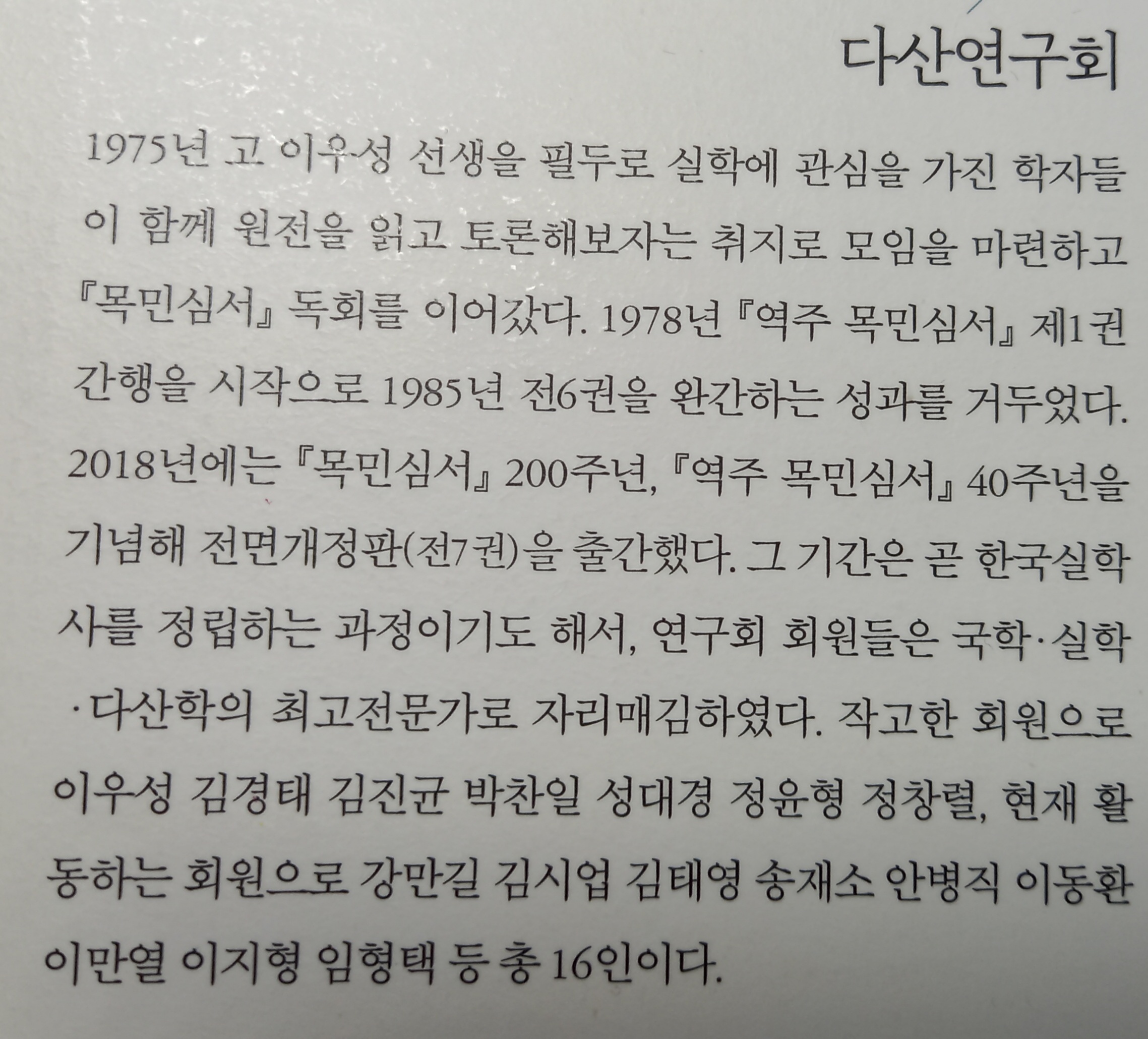 연구회에서 1권으로 압축하여 낸 이 책 『정선 목민심서』는 2020년 3월에 개정판이 나왔는데요, 이쯤이면 개정판이란 게 또 개정해야 마땅하겠습니다만, 그러거나 말거나 저는 이렇게 하나하나 틀린 해석 바로 잡아서 일일이 완벽하게 다듬어 12권 초고를 마쳤습니다. 진행할 때는 굉장히 오랜 시간으로 느껴졌는데, 지나고 보니 “정말 다 마친 건가?”하고 마치 꿈꾸는 거 같습니다. 하여튼 또다시 정신 무장하고서 지금 다시 1권부터 계속 첨삭 수정하는 중인데, 12월 말까지 완성할 계획입니다. 물론 출판사에도 그때 가서야 알릴 셈이고요. …… 그간 어디다 연재하자, 몇 권씩이라도 출간하자, 하고 제의하는 것을 계속 아직, 아직, 해왔답니다. 원고가 끝나도 끝난 게 아니었으니까요. 이 원고가 어마어마하게 중요한 거라는 걸 차츰차츰 깨달았기 때문일까요? 암튼 연구회에서도 그렇습니다. 제가 요렇게 한 거를 보면 아마도 기절초풍 난리가 날 것 같아요. 혹시나 제가 책을 내지 못하도록 방해 공작을 할지도 모르고요. 그래서 완결되기 전엔 파일을 섣불리 넘기지도 못하는데, 다만, 특강이니 특별히 조금만 털어놓는다는 것을 알아주시기 바랍니다.