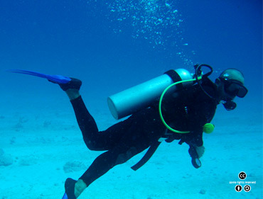 헬륨은 신경 조직에 대한 용해도가 작기 때문에, 잠수부가 사용하는 산소통의 질소를 대체해 잠수병을 예방하는데 사용된다. <출처: (CC)Soljaguar at Wikipedia.org> |