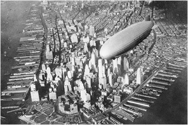 맨하탄 상공을 날고 있는 비행선 USS Akron. 20세기 초반 실용화된 비행선을 채우는 데도 가벼우면서도 폭발성이 없는 헬륨가스가 사용되었다. |
