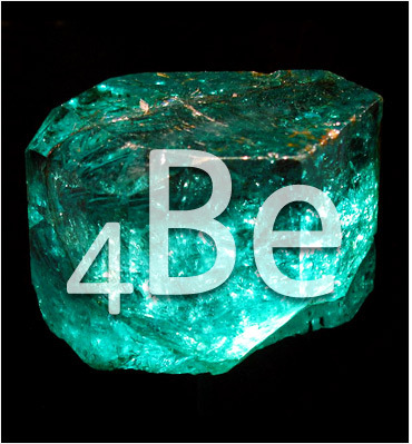 원자번호 4번, 베릴륨. 에메랄드는 자연 상태에서 형성된 베릴륨 화합물이다. |