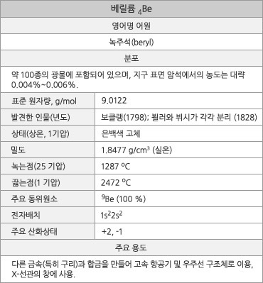- 수치로 보는 베릴륨