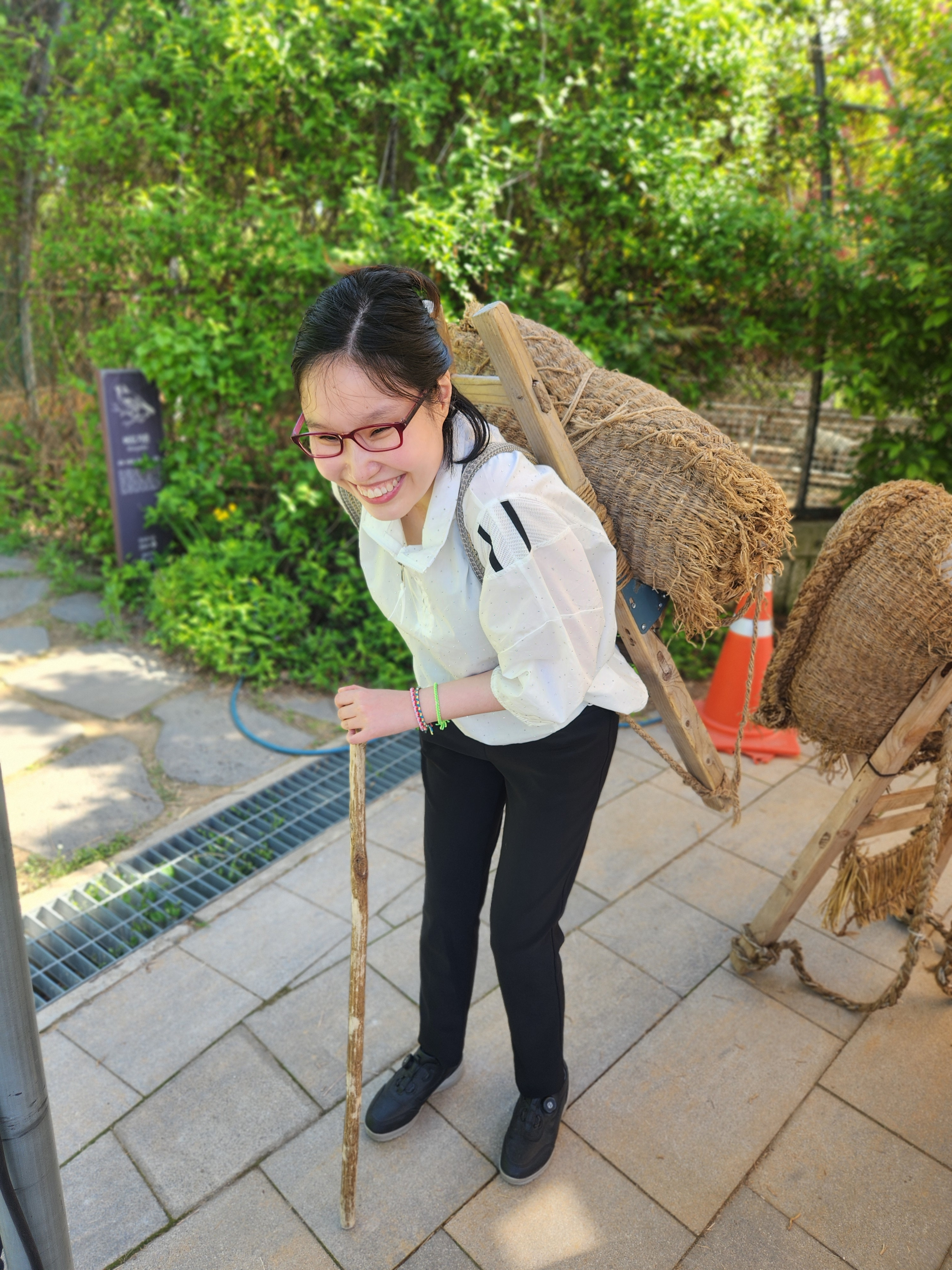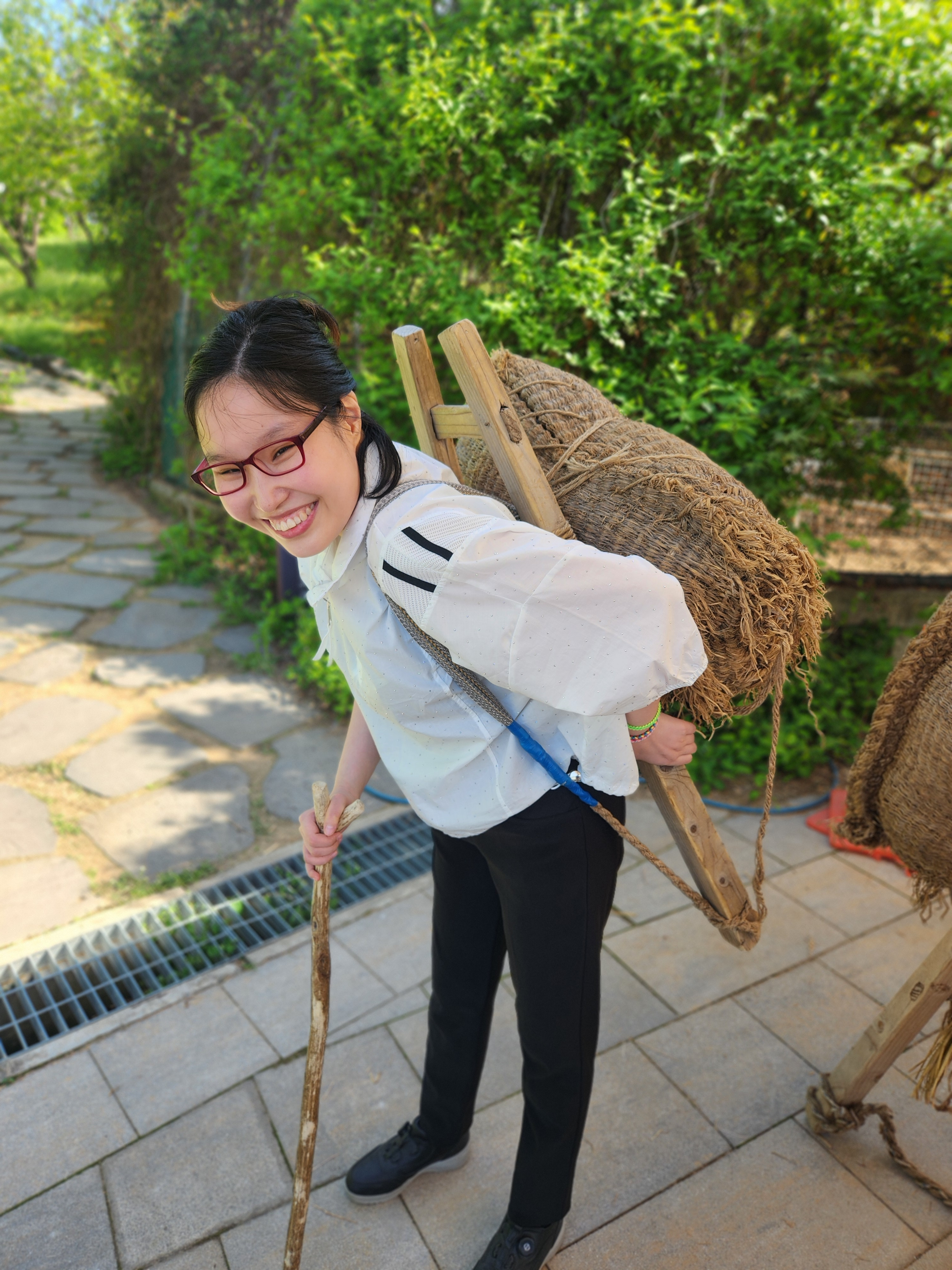 나는 지게를 직접 등에 짊어져 봤는데, 균형 잡기가 쉽지 않더라.