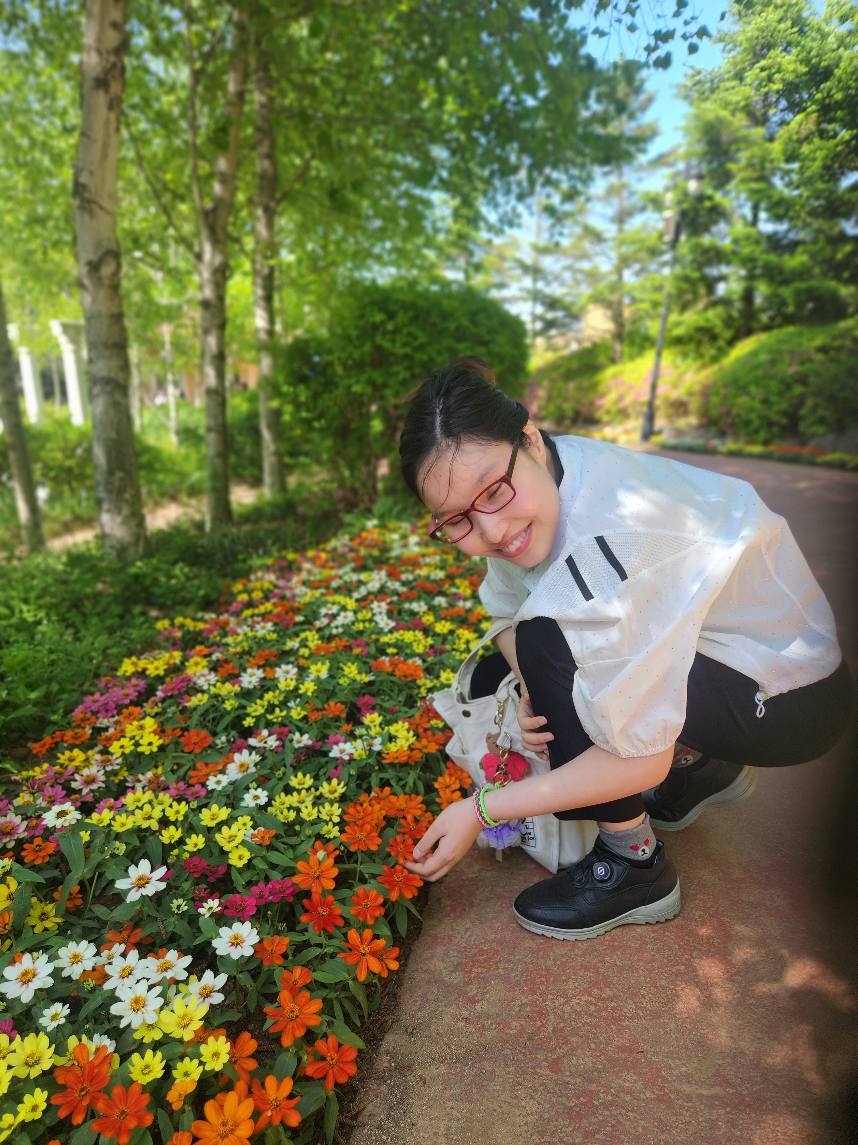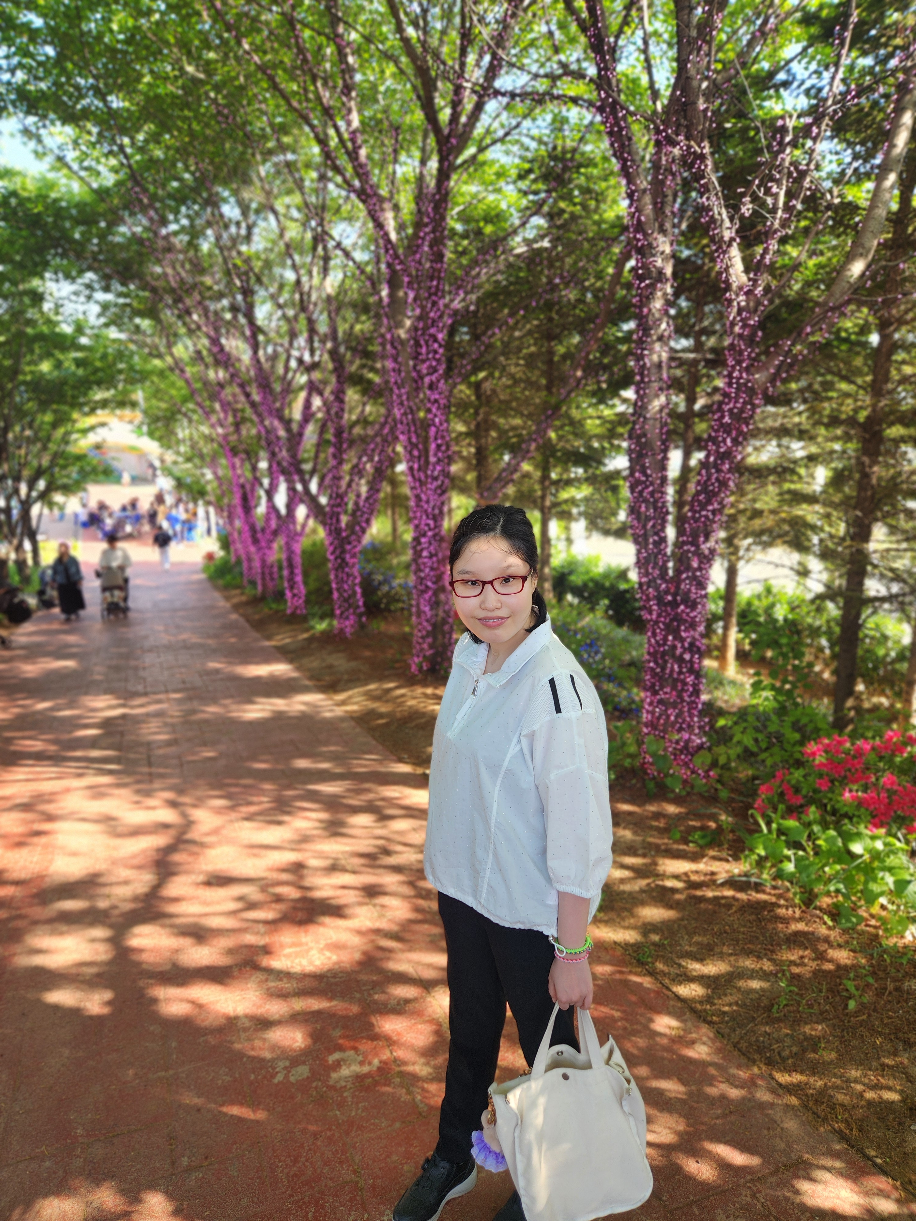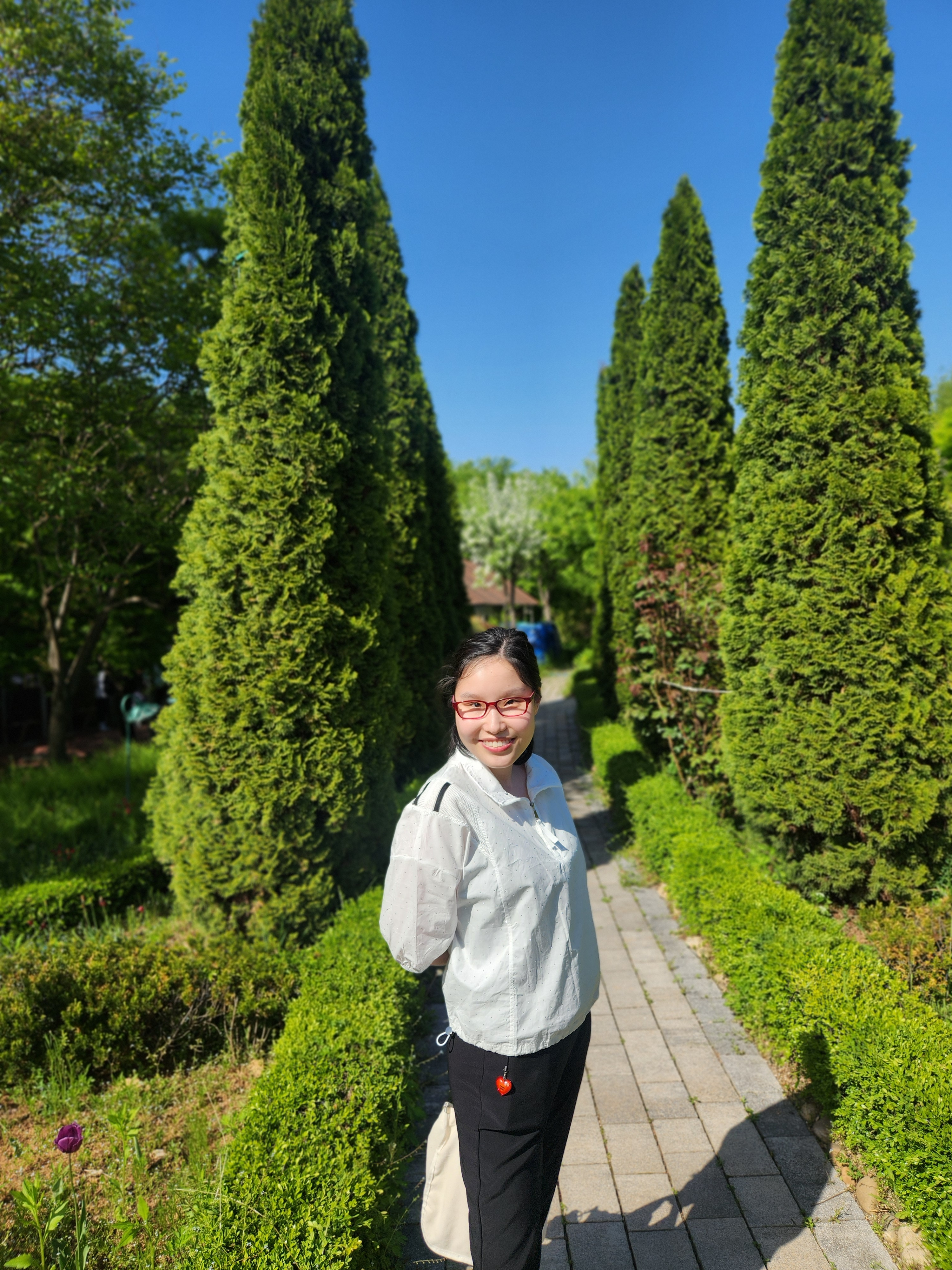 나무들이 늘어진 근사한 길에서도 인생 사진을 남겼고