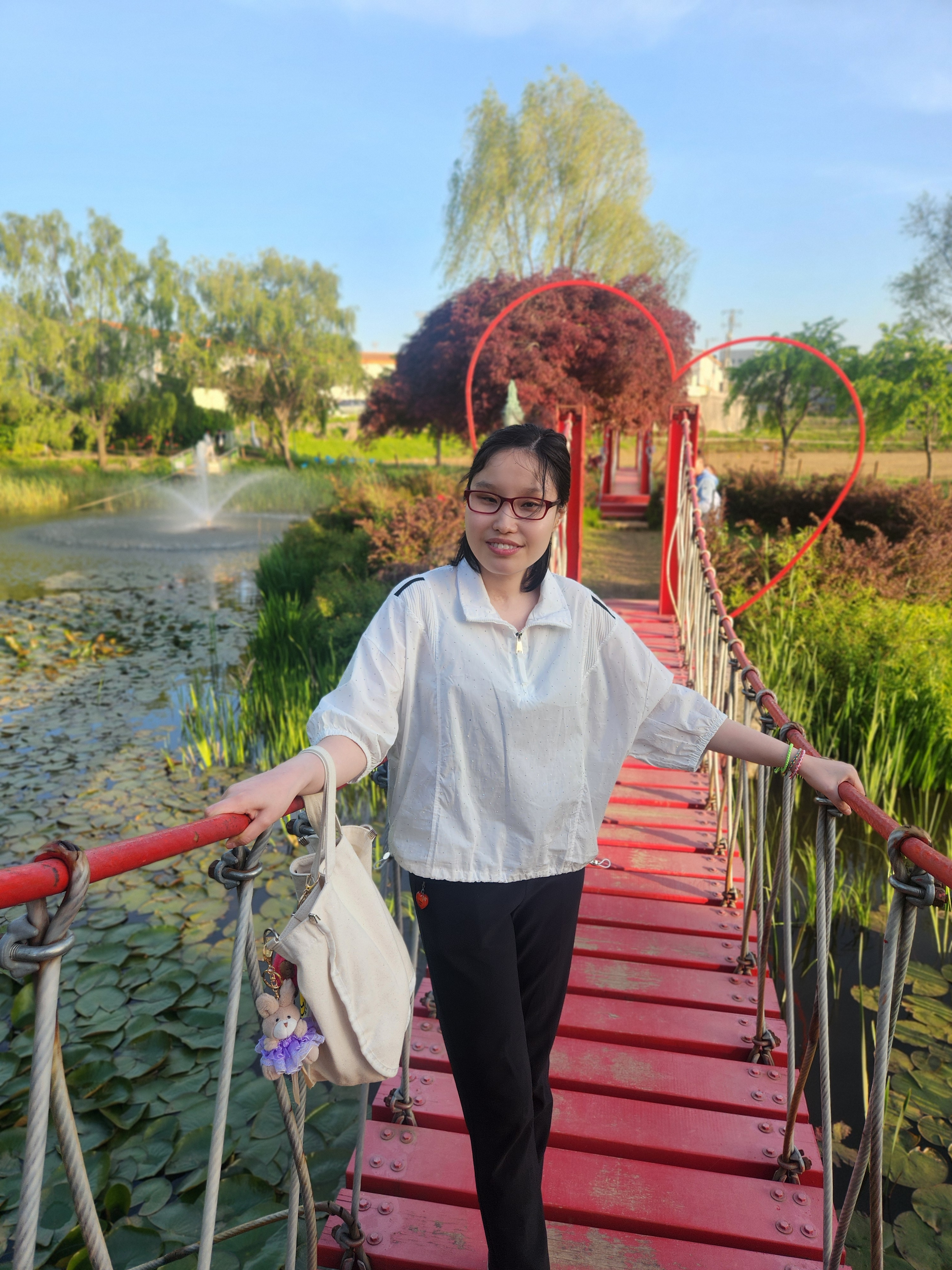 초승달 그네 포토존에서 손가락 V 모양하고 사진 찰칵~