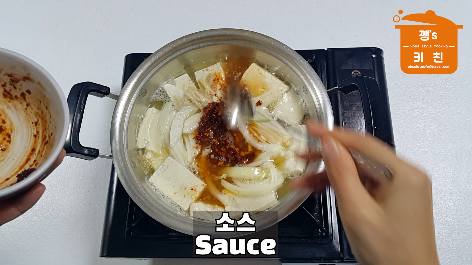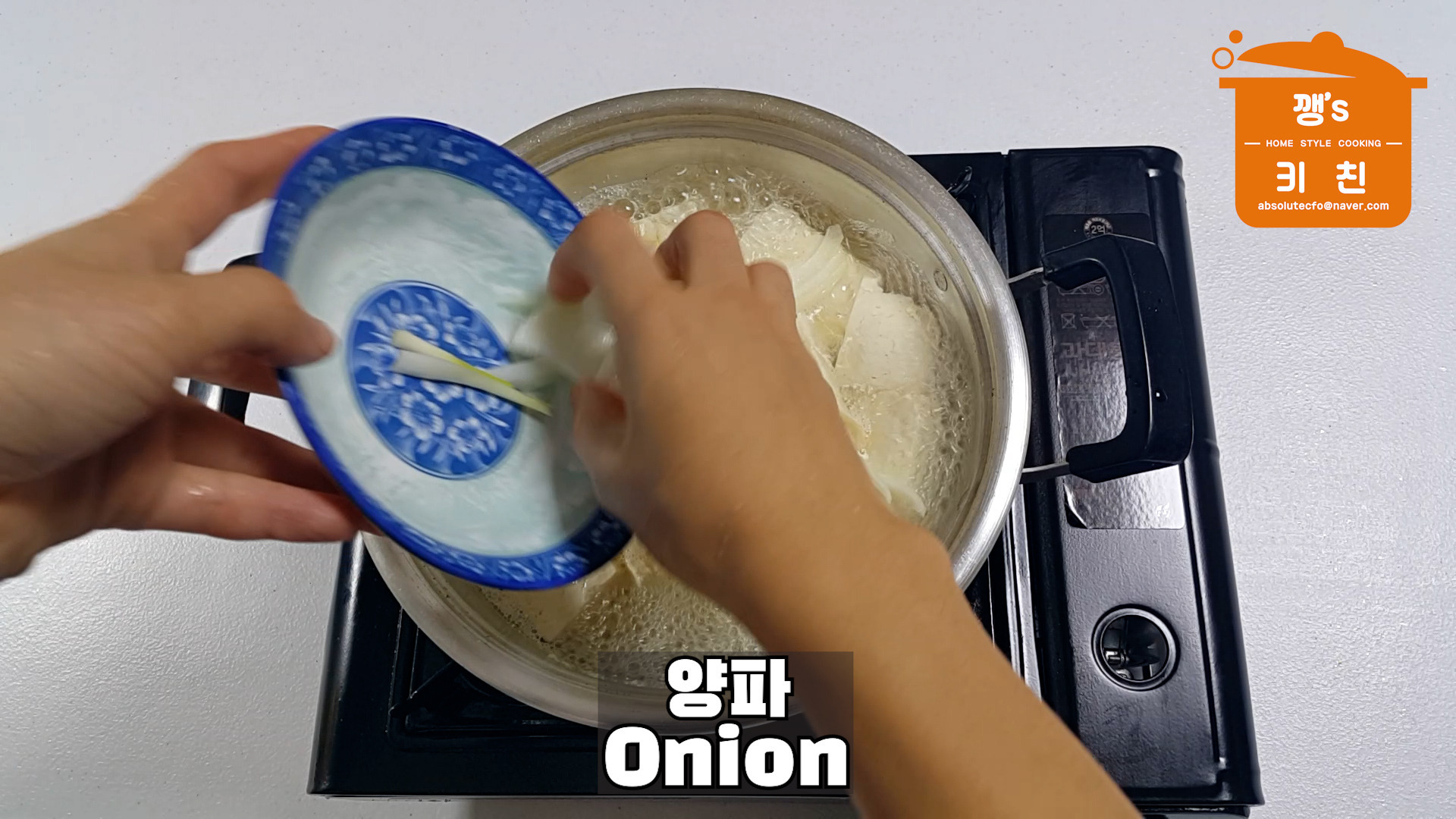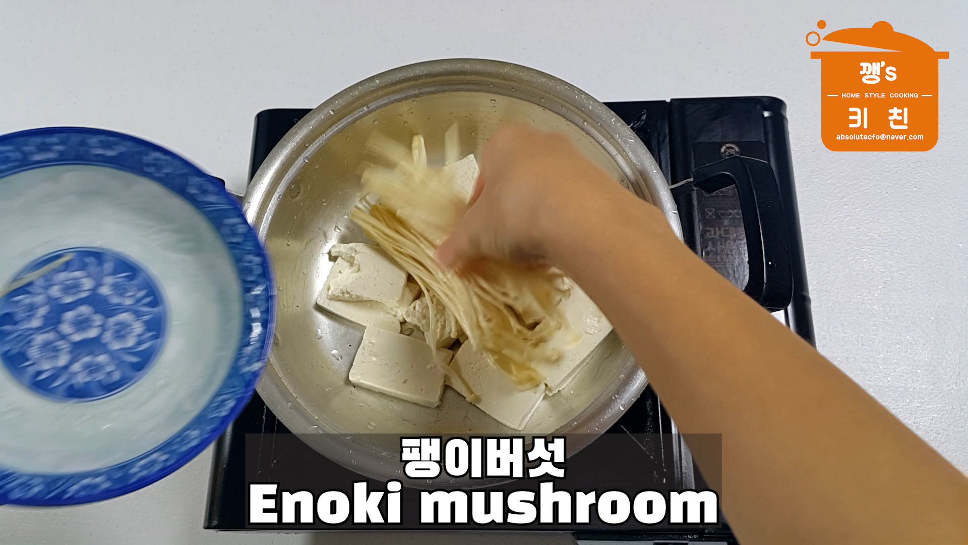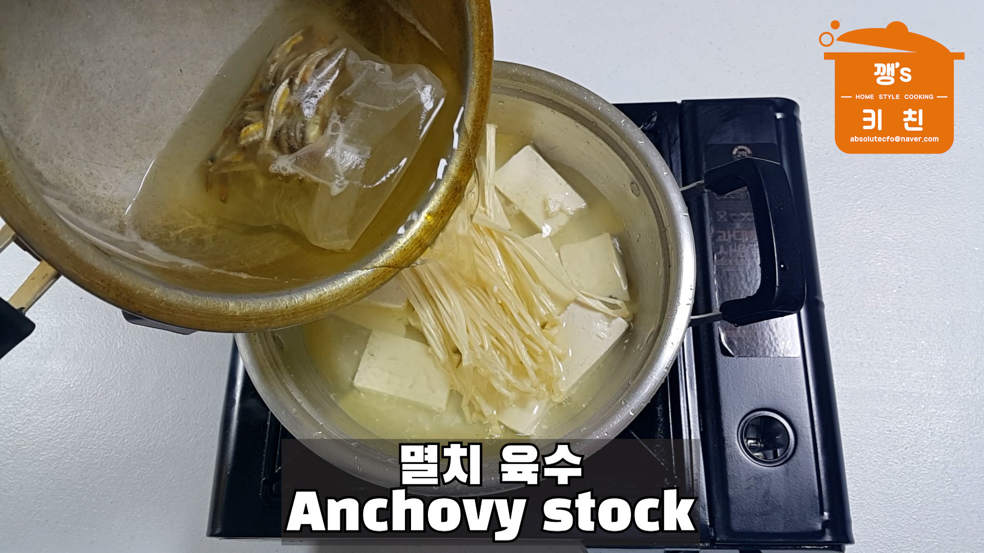 두부, 멸치, 팽이버섯, 양파, 대파,