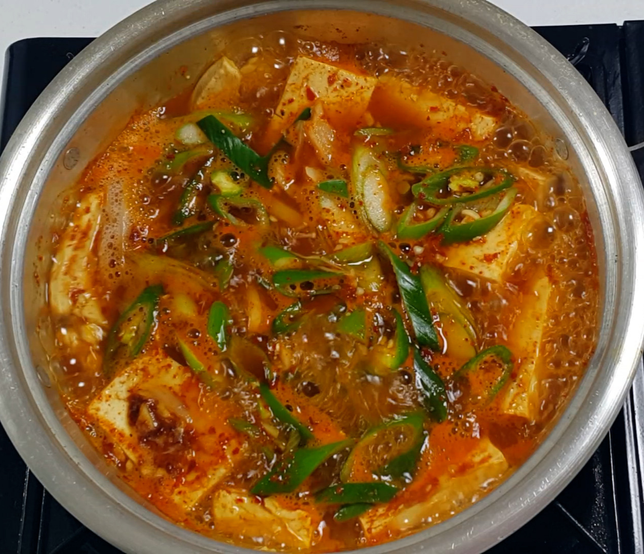 멸치 육수에 두부만 넣고 양념해서 끓여