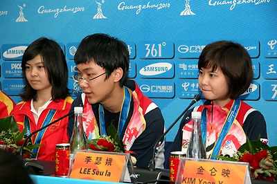 광저우 아시안게임, 바둑종목 남녀단체전 4회전이 열리는 광저우기원 대회장에 이세돌과 이슬아를 선두로 한국 대표팀이 입장했다. 선수들은 대부분 밝게 웃으며 기자들과도 약간 큰 소리로 '안녕하세요'라고 인사하며 자리에 앉기 전 몇마디 말을 나누기도 했다.