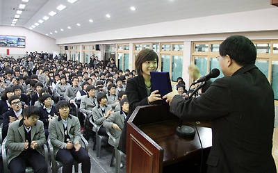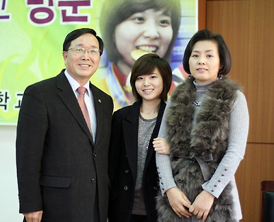 12월 21일 2010광저우 아시안게임 금메달(2관왕)을 화보촬영과 방송스케줄로 바쁜 나날을 보내는 이슬아 초단이 모교를 방문해 공로패를 받고 재학생들과 만남의 시간을 가졌다.