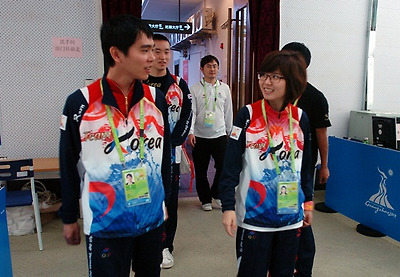 오후의 이슬아는 오전의 패배에서 완전히 벗어난 모습이다. 이슬아는 오전에 열린 북한과의 3회전 대회에서 김유미에게 패배했다. 이슬아는 북한선수 김유미가 계시기 조작미숙(?)으로 시간패가 걸렸지만, 대국을 지속해 근소한 차이로 패배했었다. (자세한 정황은 별도로 정리 예정)◀ 이세돌은 이창호,강동윤에 이은 단체전 오더 3번으로 한국의 중심축이다. 중국 측 3번이 류싱인 것과 대비된다.