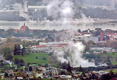 ▲ 마오리 옛 수도 로토루아(Rotorua). 간헐천에서 유황 연기가 항상 솟아 오른다 |