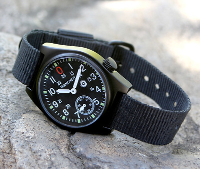 WANCHER Grukha2/그르카 2 밀리터리 웟치 기계식 손으로 말기 PVD 가공 매트 블랙 군용 빈티지 디자인!스몰 second 탑재 30도의 세계를 체현